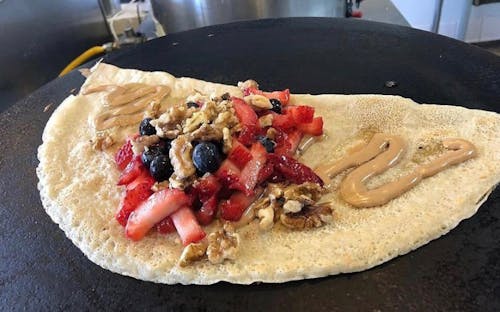 Best Crepes ever! I always build my own sweet crepe with sweet cream and strawberries. They never disappoint, Definitely come here!!